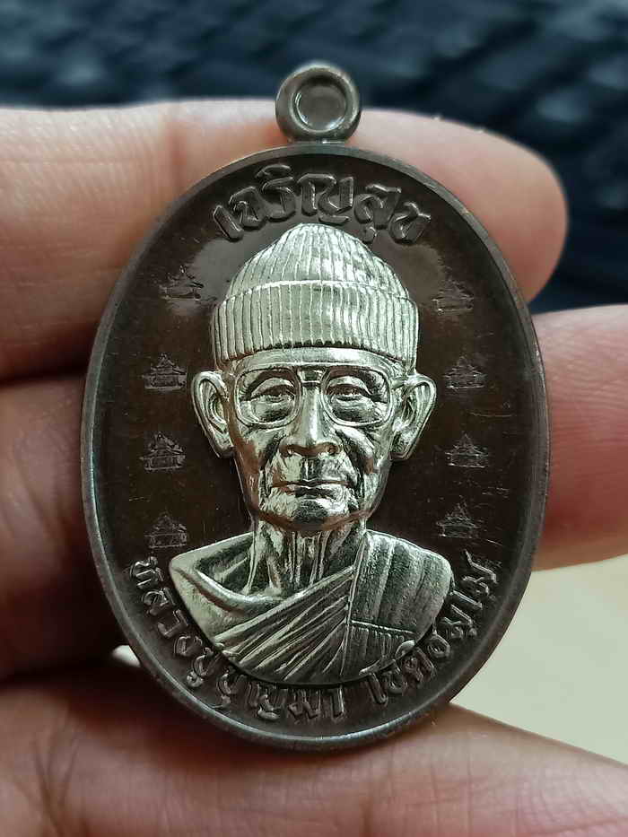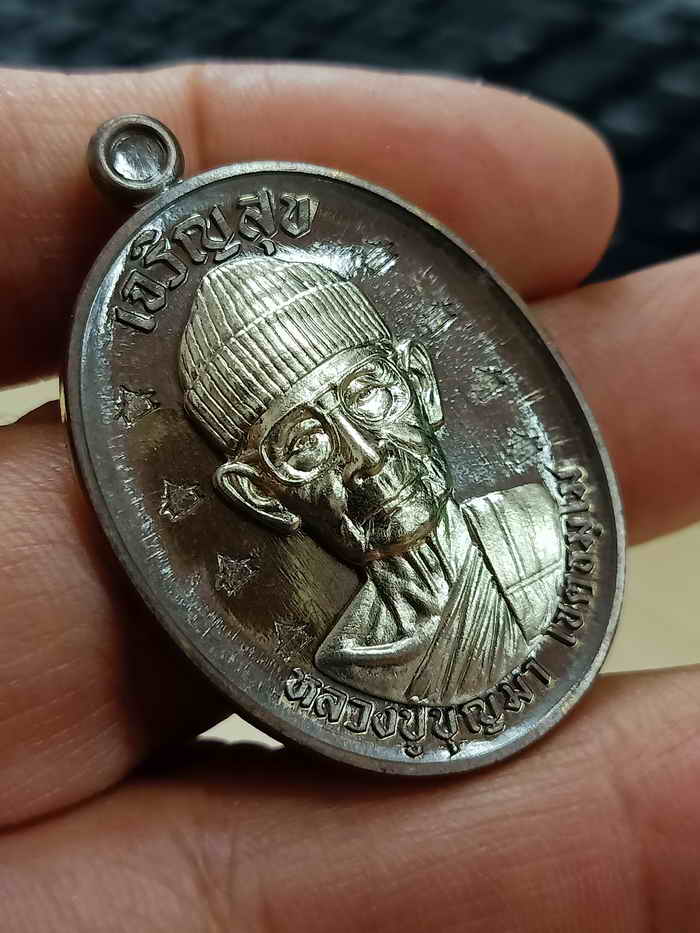 ชื่อพระเครื่อง วัดใจ 100 เหรียญเจริญสุข รุ่นแรก พิมพ์ใส่หมวก ใส่แว่น หลวงปู่บุญมา สำนักสงฆ์เขาแก้วทอง จ.ปราจีนบุรี 2567 ชนวน หน้ากากอัลปาก้า ตอกศาลารอบ หมายเลข 598 กล่องเดิม