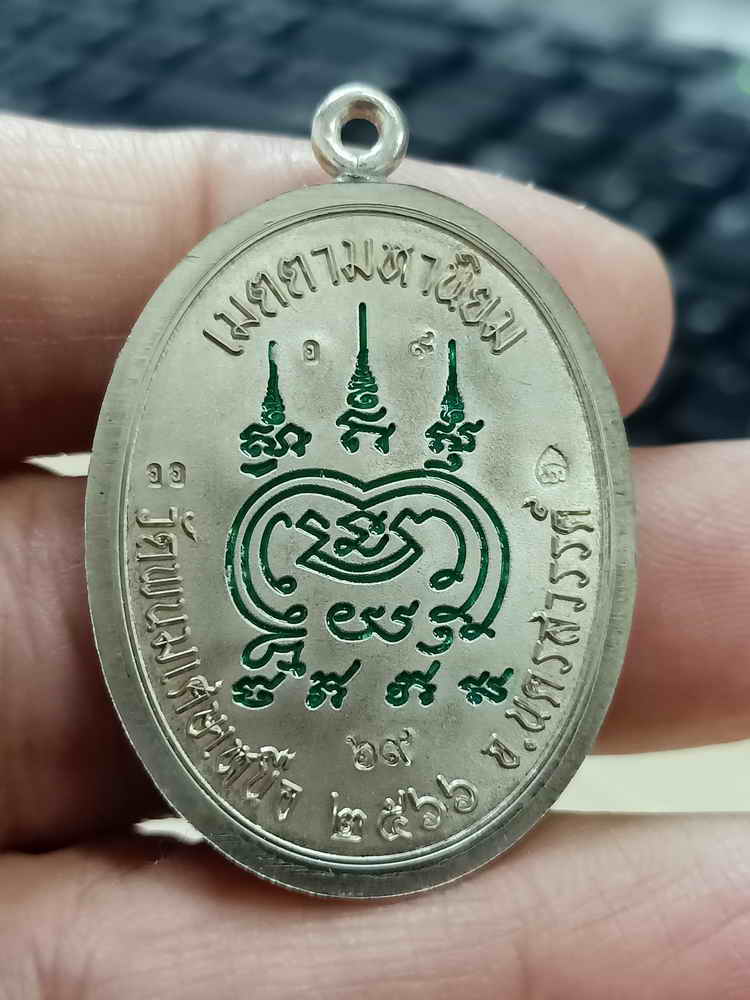 วัดใจ 100 PSGA เหรียญเจริญสุข งานบุญกฐิน หลวงพ่อยูร สคารโว วัดพนมเศษเหนือ จ.นครสวรรค์ ปี 2566 เนื้ออัลปาก้า ห่วงเชื่อมเงิน ลงยาเขียว จีวร ยันตื หมายเลข 69 กล่องเดิม ***ป๋องสุพรรณการันตี |