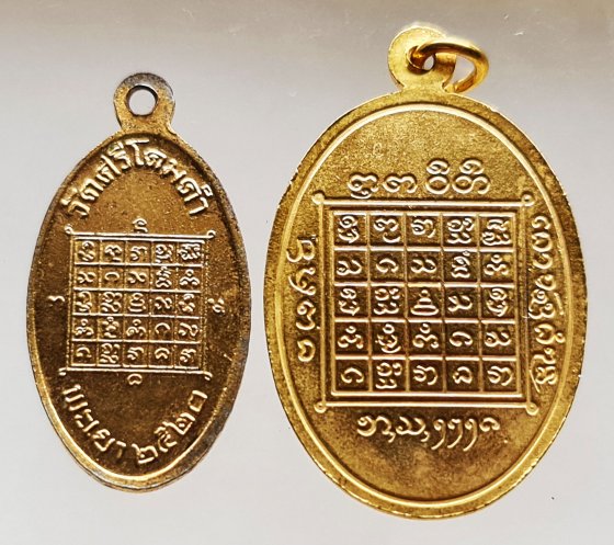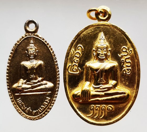 เหรียญพระเจ้าตนหลวง หลังยันต์ ปี20 + เหรียญพระเจ้าตนหลวง หลังยันต์จม ปี21 วัดศรีโคมคำ จ.พะเยา กะไหล่ทองเดิม ทั้ง ๒ เหรียญ