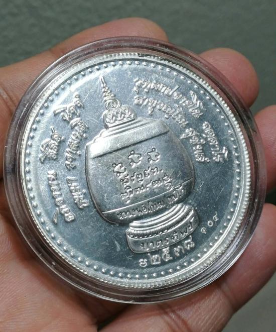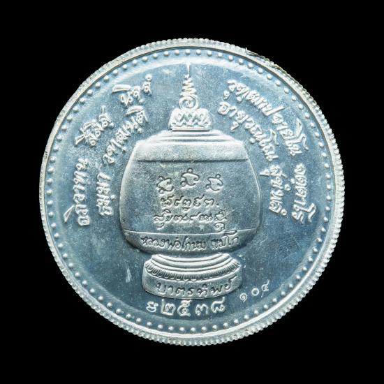 เหรียญบาตรน้ำมนต์หลวงพ่อเกษม เขมโก รุ่นบาตรทิพย์ ปี2538 เนื้อทองแดงชุบเงิน (วัดใจเคาะเดียว) |