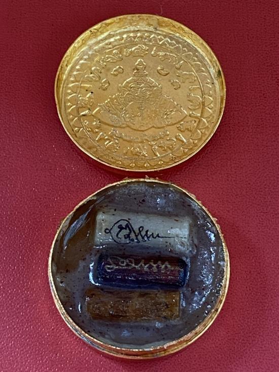 เนื้อ โลหะชุบทองลงยาสีแดงขอบสีน้ำเงิน ขนาด3.2ซม |