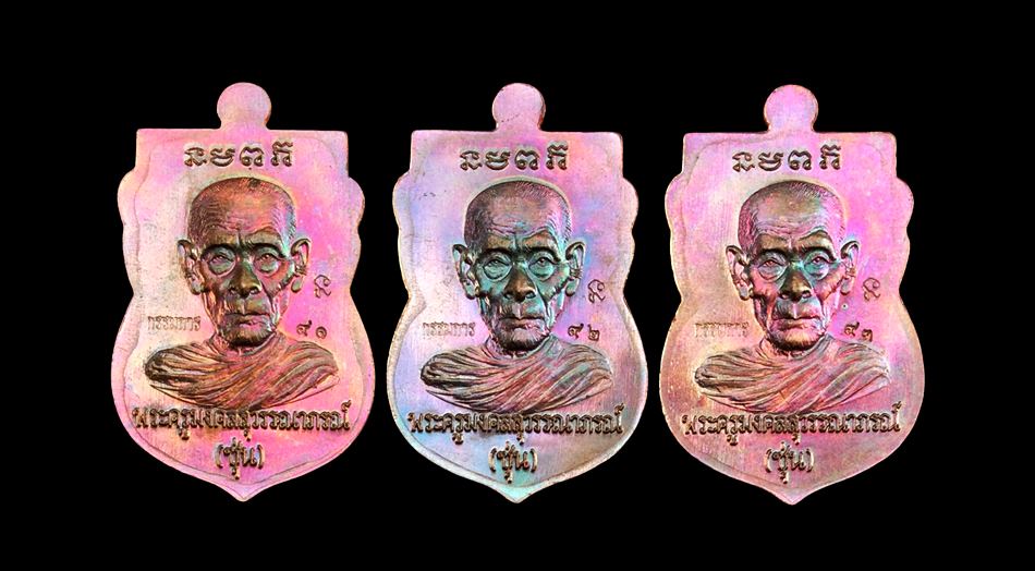 +!!เคาะเดียวllดง ตลอดสาย!!+ (รับ 3 เหรียญ) เสมาหัวโต หลวงปู่ทวด-พ่อท่านซุ่น วัดบ้านลานควาย จ.ปัตตานี รุ่นมงคล88 ปี2558 เนื้อทองแดงผิวรุ้ง เลขเรียงติดกัน เลขสวย 91/92/93 พร้อมกล่องครับ