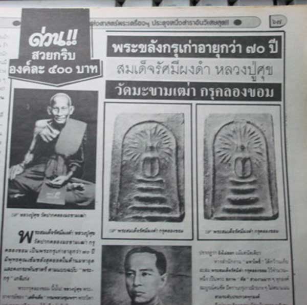 พระสมเด็จรัศมี เนื้อดำ กรุวัดคลองขอม รุ่นนี้หลวงปู่ศุขวัดปากคลองมะขามเฒ่าร่วมปลุกเสกกับหลวงพ่ออุ่มแห่งวัดคลองขอม และบรรจุเข้ากรุไว้ที่วัดคลองขอมนี้..มีสรรพคุณวิเศษจากหลวงปู่ศุขเต็มที่ ซ้ำราคาก็แสนเบา.....สภาพสมบูรณ์สวยๆอย่างนี้..