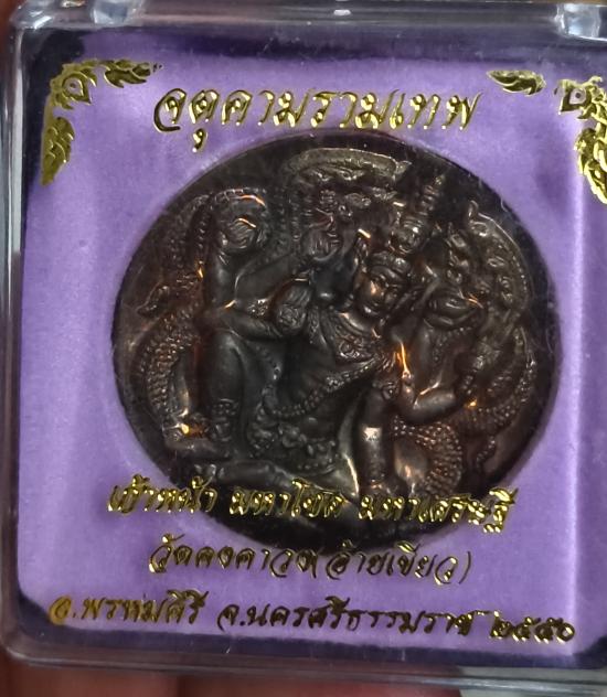 เหรียญองค์พ่อจตุคามรามเทพ "รุ่นก้าวหน้า มหาโชค มหาเศรษฐี" วัดคงคาวง (วัดอ้ายเขียว) อ.พรหมคีรี จ.นครศรีธรรมราช ปี 2550 เนื้อนวะพลายเงินวิ่งสวย มีโค้ตและหมายเลขกำกับ |