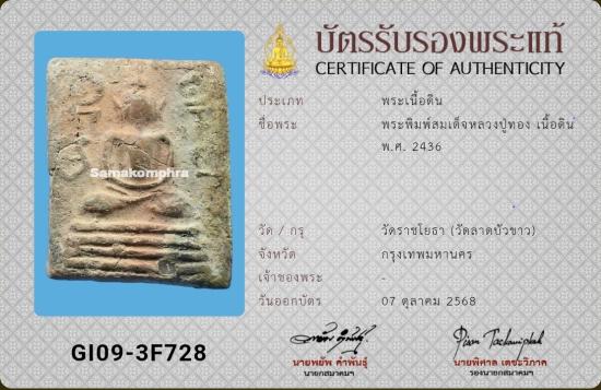 สมเด็จยันต์ข้าง (โต๊ะกัง) เนื้อดิน หลวงปู่ทอง วัดราชโยธา ปี2436 พร้อมบัตรสมาคม
