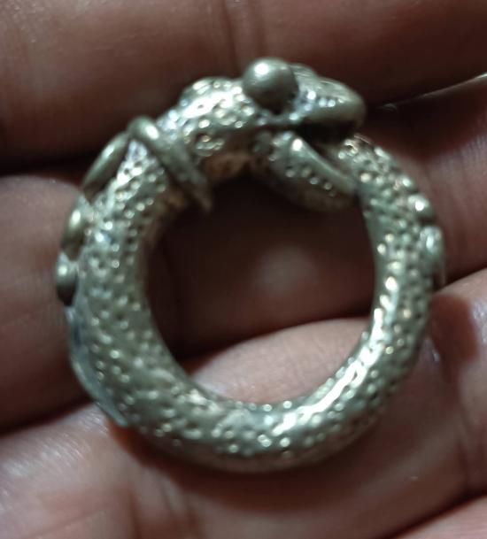 แหวนงูกินหาง หลวงพ่อรัช วัดกระเบา จ.สุราฎร์ฯ เนื้อสัมฤทธิ์แก่ เงิน ปี 2537 รับประกันแท้ตามกฎกติกา |