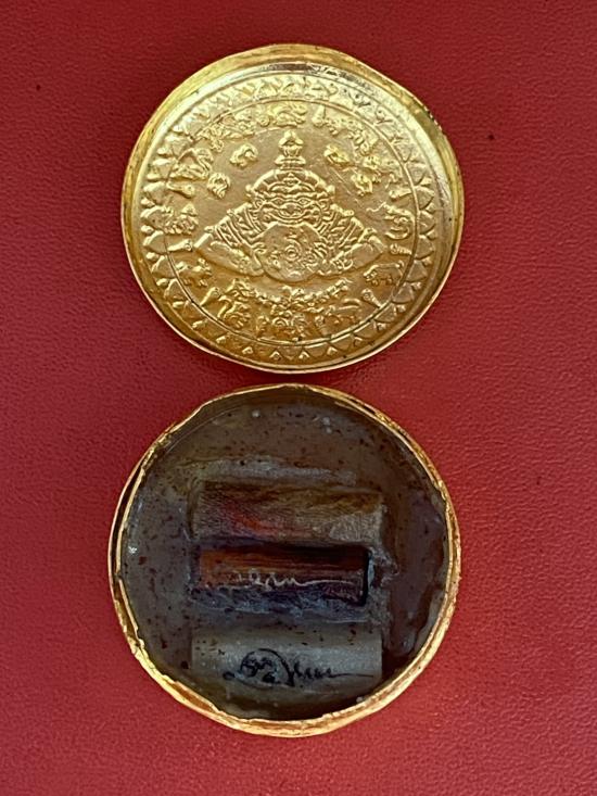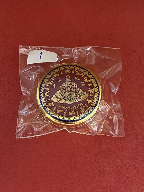 เคาะเดียวแดง สีผึ้งพระราหู รุ่น มงคลจักรวาล เนื้อ โลหะชุบทองลงยาสีแดงขอบสีน้ำเงิน ขนาด3.2ซม