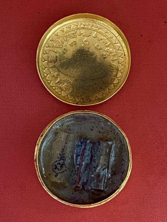 เนื้อ โลหะชุบทองลงยาสีแดงขอบสีน้ำเงิน ขนาด3.2ซม