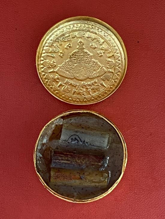 เนื้อ โลหะชุบทองลงยาสีแดงขอบสีน้ำเงิน ขนาด3.2ซม |