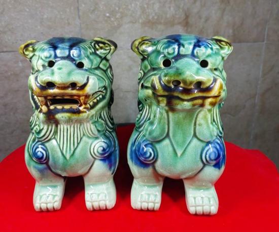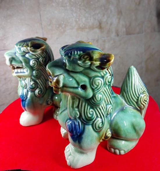**วัดใจ***สิงโตญี่ปุ่น/ซีซ่า (ขนาดสูง6 นิ้ว) สิงโตคู่นี้ลายเคลือบเอกลักษณ์พร้อม ฮู้เทพพระเจ้ากวนอู (วัดเล่งเน่ยยี่ 2) |