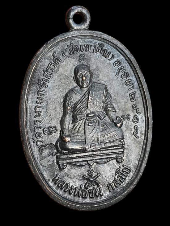 เคาะแรกแดงเลย เหรียญรุ่น ๑ ปืนไขว้ หลวงพ่อชม วัดเขาดิน อยุธยา เนื้อทองแดง พ.ศ. 2517 |