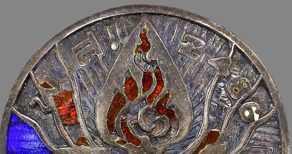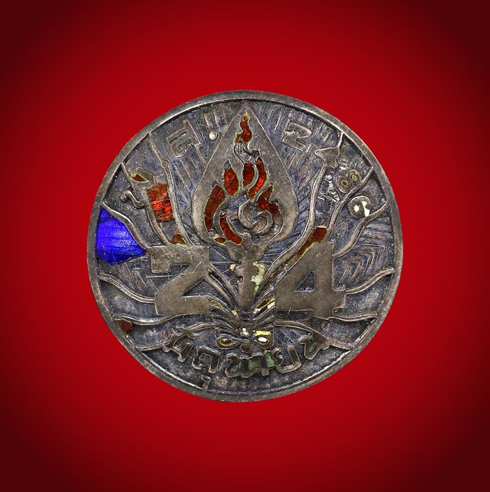 (วัดใจ)เม็ดกระดุม (ไม่ทราบที่) ที่ระลึก 24 มิถุนายน พ.ส.2486 เนื้อเงินลงยา ขนาดเม็ดกระดุม 2 cm |