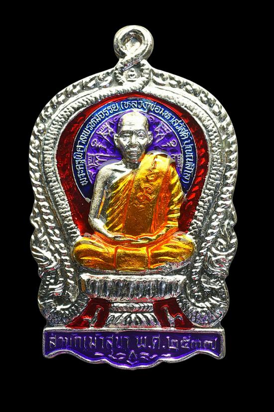 เหรียญพิมพ์นั่งพาน รุ่น 1 หลวงพ่อสวัสดิ์ ปุณณสีโล เนื้อเงินลงยาสีม่วง หมายเลข 167 วัดใจเคาะแรก!!!