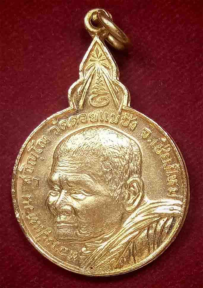เหรียญ หลวงปู่แหวน วัดดอยแม่ปั๋ง รุ่นเมตตาสร้างเจดีย์ พะเยา ปี 2520 พิมพ์ใหญ่ ม มี ขีด....กะไหล่ทอง