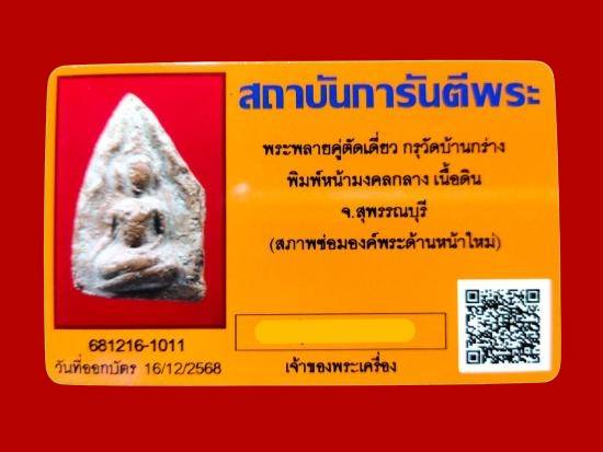 เคาะเดียว...พระพลายคู่ตัดเดี่ยว กรุวัดบ้านกร่าง พิมพ์หน้ามงคลกลาง เนื้อดิน พร้อมบัตร