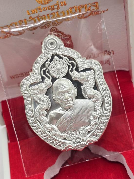 เหรียญ มังกรคู่ อายุวัฒนมงคล 81ปี หลวงปู่มหาศิลา หลวงปู่ศิลา สิริจันโท ธรรมอุทยาน วัดพระธาตุหมื่นหิน จ.กาฬสินธุ์ เนื้อเงินบริสุทธิ์ เลข ๑๐๒๑ มีกล่องเดิม