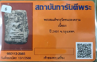 พระสมเด็จ กรุวัดชนะสงคราม เนื้อผง ปี 2491 กรุงเทพฯ สวยเดิมพร้อมบัตร