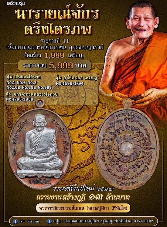 หลวงปู่มหาศิลา นารายณ์จักร เนื้อมหาชนวน อุดผงเบญจภาคี หน้ากากเงิน จมูกโด่งๆเลข657 กล่องครบ
