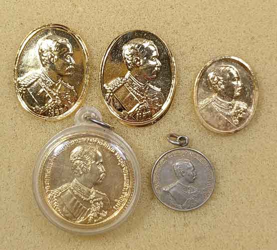 เหรียญร.5 5 เหรียญ + เหรียญร.9 +ล็อกเก็ต ร.9 3 องค์ + สมเด็จพระนางเจ้าสิริกิติ์