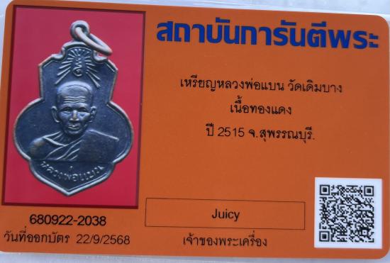 คาะเดียว**เหรียญหลวงพ่อแบน วัดเดิมบาง จ.สุพรรณบุรี ปี2515 (หลวงพ่อกวยปลุกเสก) |