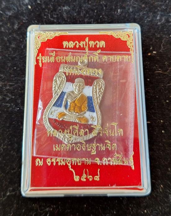 วัดใจ หลวงปู่ทวด หลวงปู่ศิลา เมตตาอธิษฐานจิต รุ่นเลื่อนสมณศักดิ์ เหนือดวง เนื้ออัลปาก้า ลงยาลายธงชาติ No.238 |