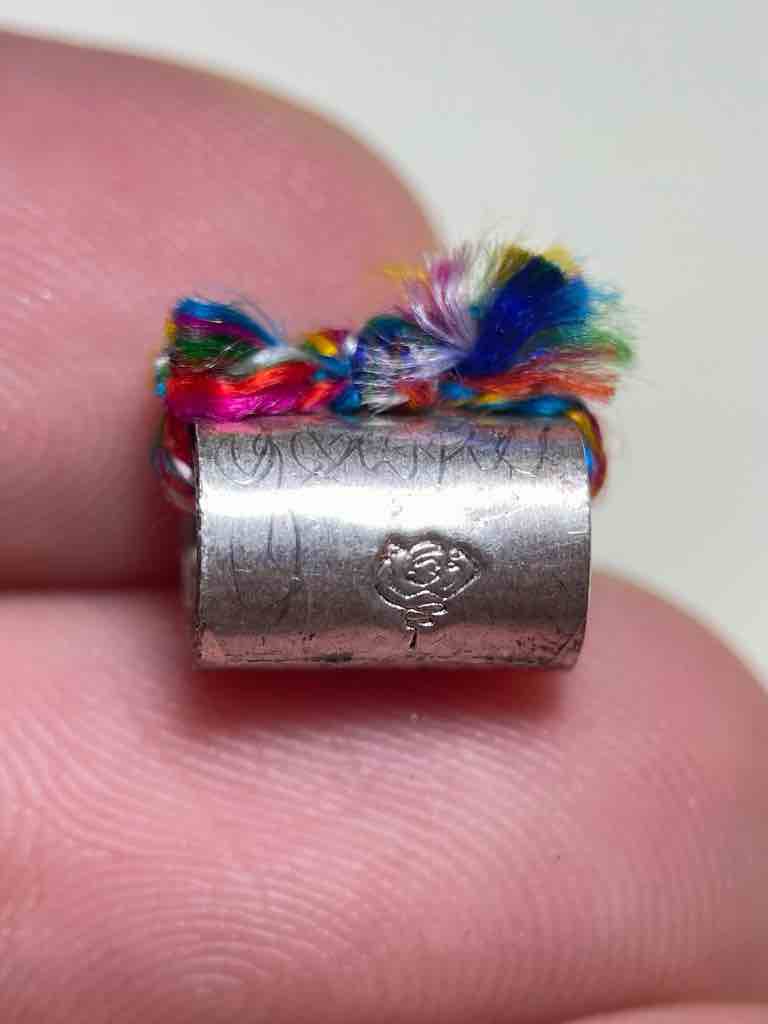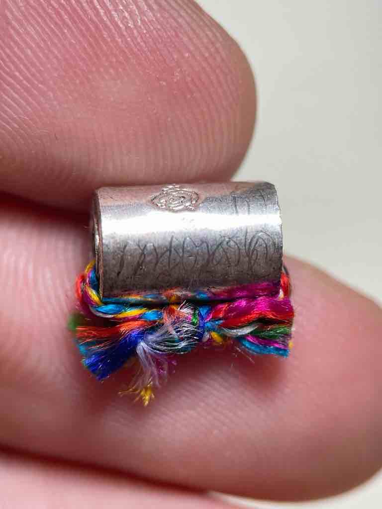 550.- ems ตะกรุดลูกอมโลกธาตุ เนื้อเงิน พระอาจารย์เทพย์ วัดแก้วเจริญ สมุทรสงคราม (เจ้าอาวาส วัดละมุด) ตอกโค๊ด มีจารลายเซ็น กนตสีโล มีกล่องเดิม ท่านได้สืบทอดวิชามาโดยตรง จาก หลวงพ่อหยอด วัดแก้วเจริญ |