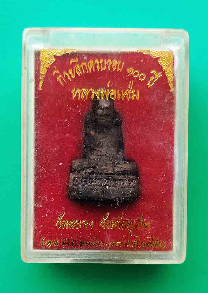 รูปหล่อหลวงพ่อแช่ม วัดฉลอง จ.ภูเก็ต พิมพ์หลังคู้ย้อนยุค งานครบรอบ100ปี ปี 2551 กล่องเดิม |