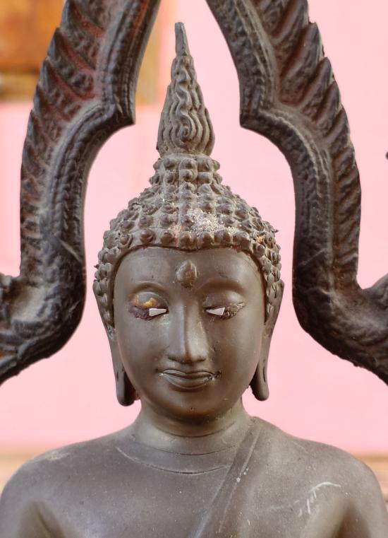 พระบูชา หน้าตัก 5 นิ้ว สมเด็จพระศรีเมืองทอง วัดต้นสน จ. อ่างทอง เนื้อทองเหลืองเก่า ซุ้มถอดได้