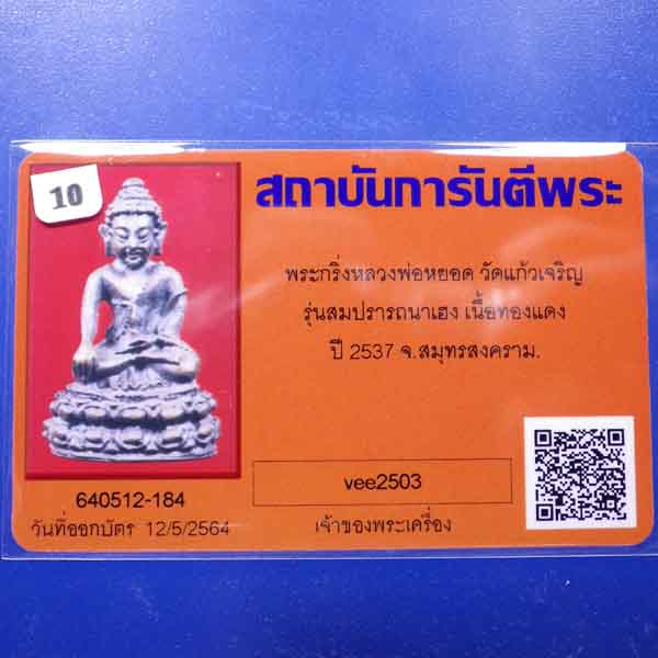 พระกริ่ง หลวงพ่อหยอด รุ่นสมปรารถนาเฮง เนื้อทองแดง วัดแก้วเจริญ ปี 2537....P10 ..(64.5.21