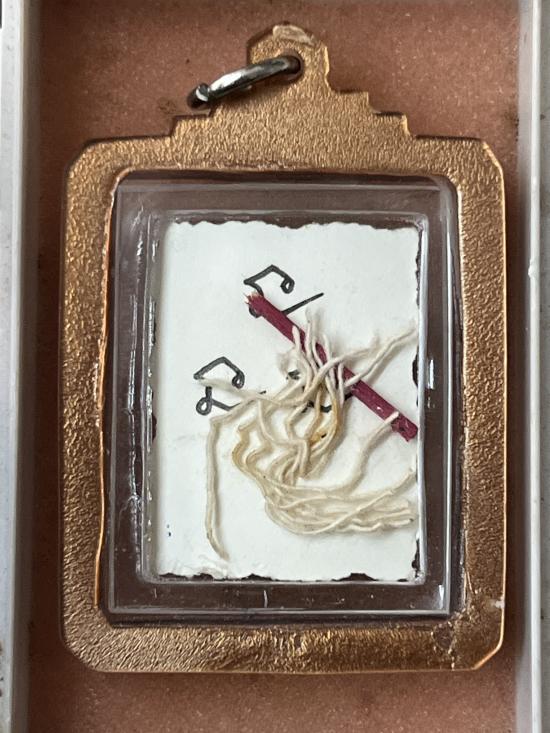 รูปของแสตมป์กระดาษหนังไก่ สวยคมชัด หลวงพ่อเกษม หลังจารนะ ก้านธูป สายสิน เลี่ยมวินเทจ |
