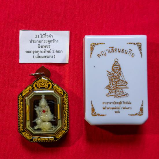 พญาเสือนอนกิน พระอาจารย์ประสูติ วัดในเตา ไม้งิ้วดำ ประกบกระดูกช้าง ฝังเพชร ตะกรุดทองทิพย์ 2 ดอก (เลี่ยมกรอบใส่น้ำมันเสือเดิมๆจากวัด) เลขโค้ด 5 |