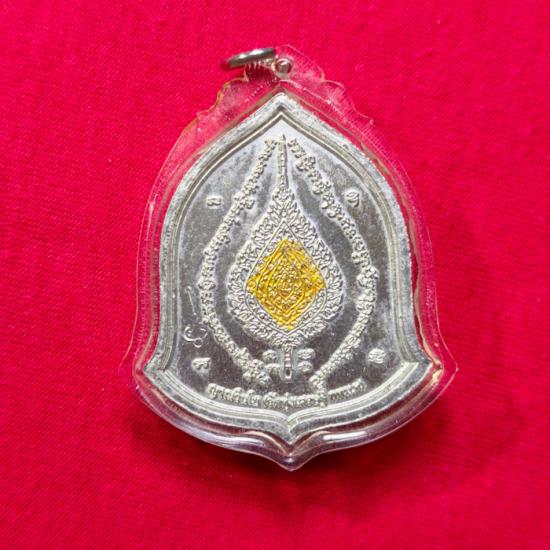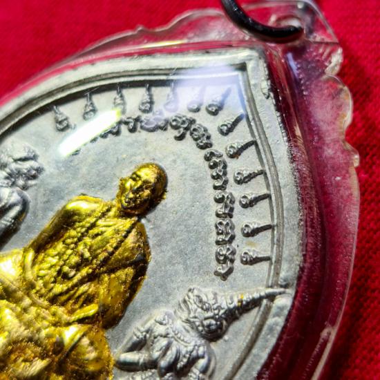 เหรียญเลื่อนยศ เจริญลาภ เนื้อปรอทเสก ปัดทอง หลวงพ่อเณร วัดทุ่งเศรษฐี เลี่ยมเดิมๆจากวัด