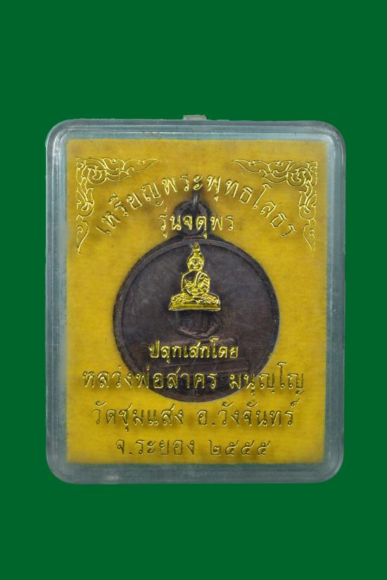 วัดใจ เหรียญพระพุทธโสธร รุ่นจตุพร หลวงพ่อสาคร วัดหนองกรับ มีโค๊ต สภาพสวยเดิม พร้อมกล่องเดิม หมายเลข 340