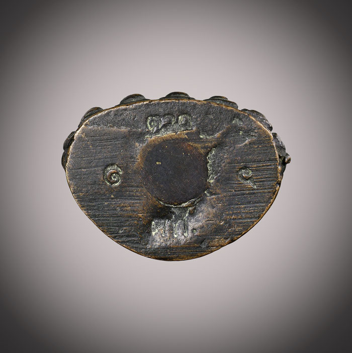(วัดใจ)พระกริ่งหน้าจีน (ไม่ทราบที่สร้าง) เนื้อโลหะผสม พร้อมตอกโค๊ตและหมายเลข สภาพเก่าพอมีอายุ(กริ่งดังปกติ) |
