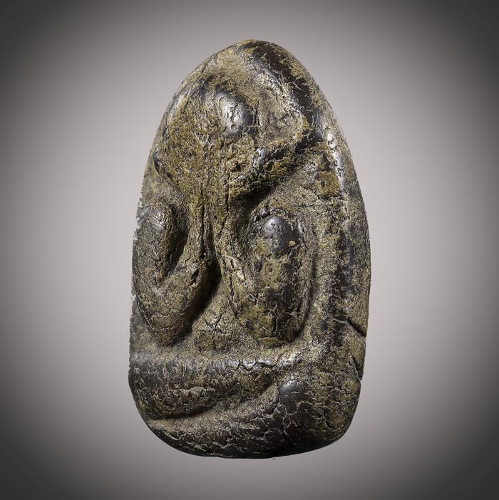 พระปิดตา เนื้อผงคลุกรัก (ไม่ทราบที่) สภาพเก่ามีอายุ ขนาดฐาน 2cm สูง 2.8cm |