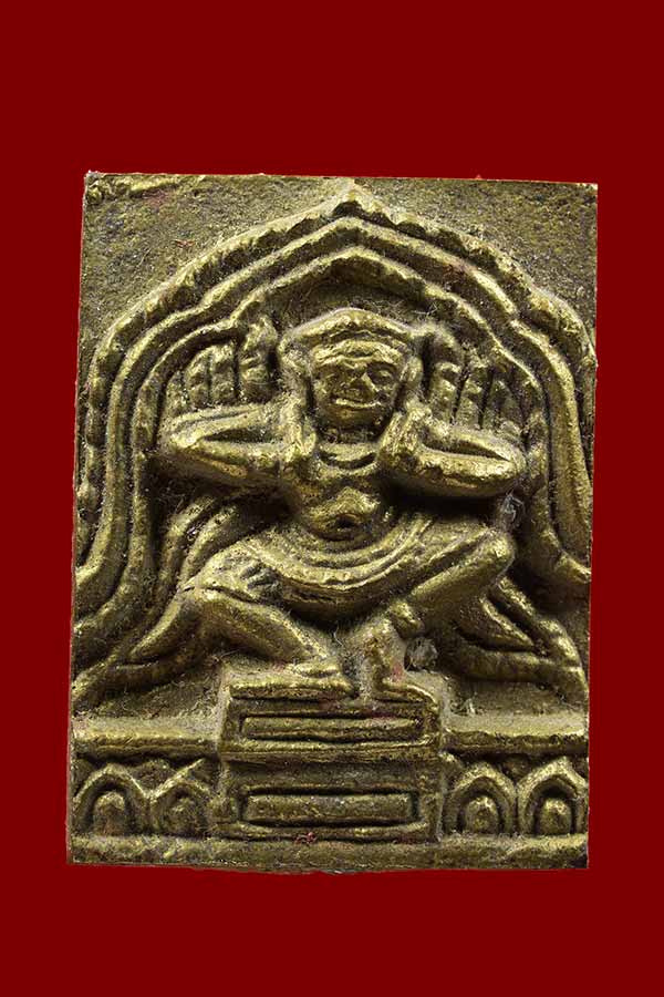 วัดใจเคาะเดียวแดง เหรียญหล่อเทพฮินดู หลังช้างสามเศียร อุดผงใต้ฐาน |