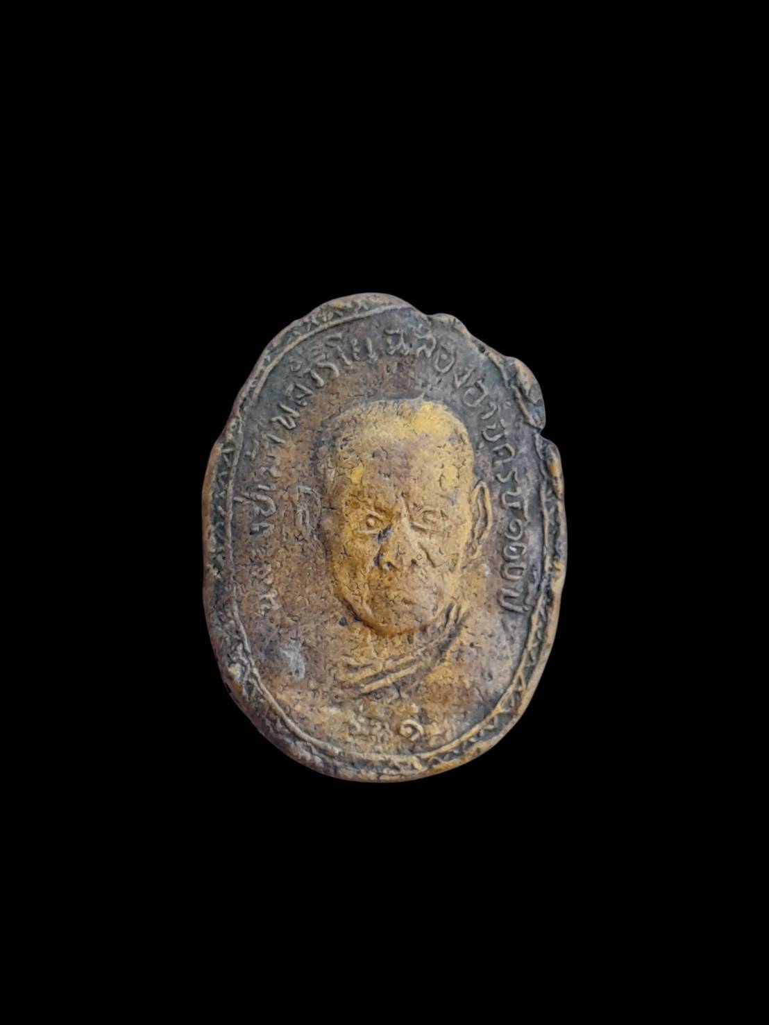 ชื่อพระเครื่อง หลวงปู่เม้าหลังหลวงปู่สุข จ.บุรีรัมย์เนื้อขมิ้นเก่า