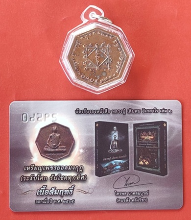 เหรียญสมนาคุณเนื้อสัมฤทธิ์ (เหรียญหล่อหลวงปู่ เดินหน อิเกสาโร รุ่นแรก เพชรยอดมงกุฎ (ระงับโศก รับโชคทุกทิศ) พร้อมบัตรรับรองหนังสือ หลวงปู่ เดินหน อิเกสาโร เล่ม 2 หมายเลข 29560 เลี่ยมกันน้ำ |