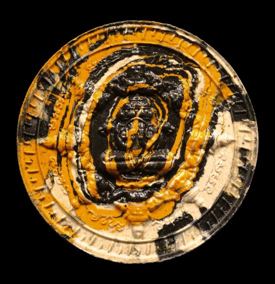 ชื่อพระเครื่อง "เคาะแรกแดง" พญาชิงดวง เนื้อผงลายเสือ (แจกทาน) หลวงปู่ศิลา สิริจันโท หมายเลข ๒๑๗๔