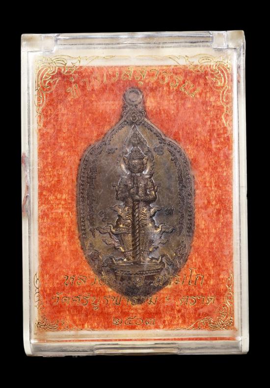 เหรียญท้าวเวสสุวรรณ รุ่นแรก เนื้อนวะโลหะ หมายเลข1233 พระครูสังฆกิจบูรพา(หลวงปู่บัว ถามโก) วัดศรีบุรพาราม(เกาะตะเคียน) จ.ตราด |
