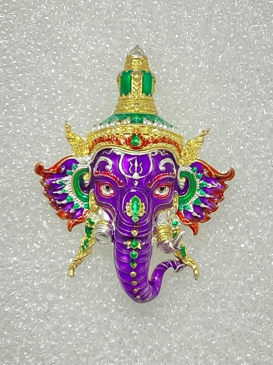 เหรียญหล่อเศียร พระพิฆเนศวร์ เศรษฐีปาฏิหารย์ วัดสุวรรณเจดีย์ จ.พระนครศรีอยุธยา เนื้อทองสัตตะ ชุบ 2K ลงยาราชวดี ( หน้าม่วง) กล่องเดิม |