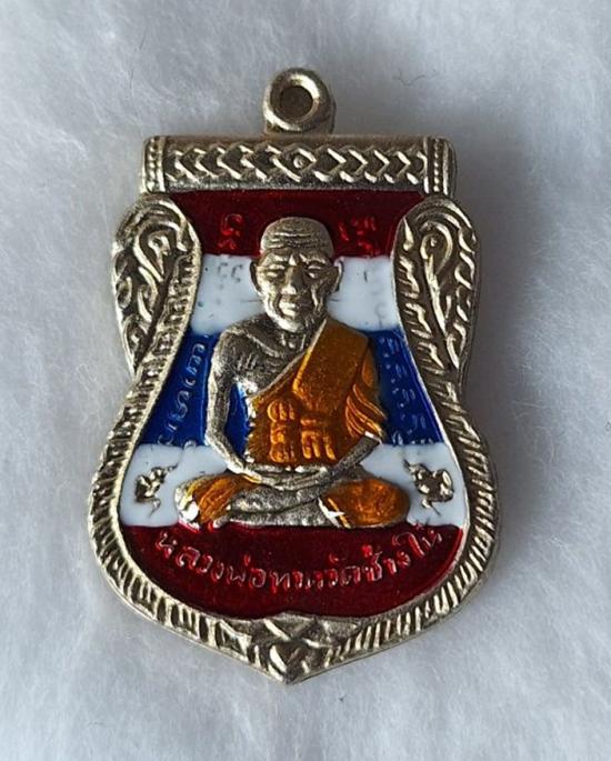 วัดใจ หลวงปู่ทวด หลวงปู่ศิลา เมตตาอธิษฐานจิต รุ่นเลื่อนสมณศักดิ์ เหนือดวง เนื้ออัลปาก้า ลงยาลายธงชาติ No.924 |