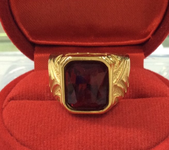**ปีใหม่-เทขาดทุน**แหวนทองเกลี้ยงมหามงคลเสริมบารมี หัวพลอยแดงโกเมนสวยมาก สวยๆ |