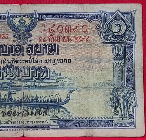 นบัตร 1บาท โทมัส ร.8 เลขแดง พ.ศ. 2478 ลายเซ็น พระยาไชยยศสมบัติ |