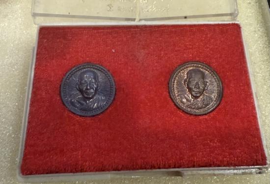 เหรียญล้อแม็กพ่อเกษม เขมโก รุ่นไตรมาส37 เนื้อเงิน+นวะ ปี38กล่องเดิม |