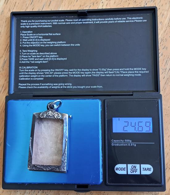 ตลับใส่พระสมเด็จ เงินแท้ กว้าง 2.9 ซม.สูง 4.2ซม.(วัดรอบนอก)น้ำหนัก 24.69g สภาพสวยบานพับแข็งแรง หนาๆ