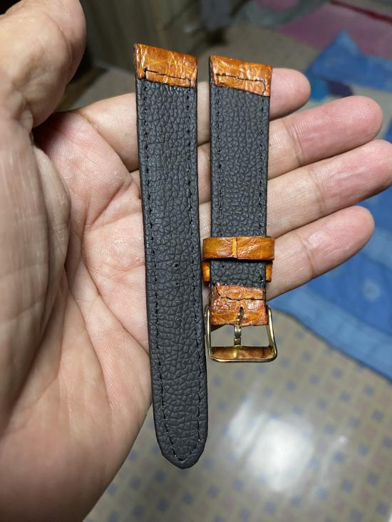 สายนาฬิกาหนังจระเข้แท้ใหม่มือ1 บัคเคิลสีทอง ขนาด20มิล |