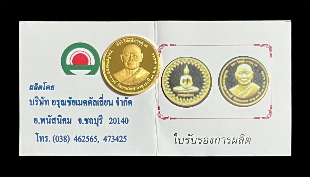 เหรียญที่ระลึก 80 ปี สมเด็จพระพุฒาจารย์ ( เกี่ยว อุปเสโณ ) หลังพระพุทธโสธร พ.ศ. 2551 เนื้อทองคำขัดเงาพ่นทราย หมายเลขมงคล 565(ดูในรายละเอียดด้านล่าง) เนื้อทองคำ 96.5 %