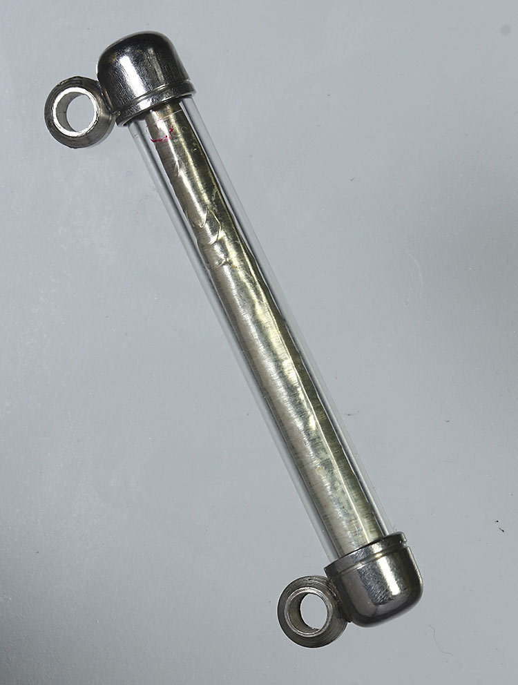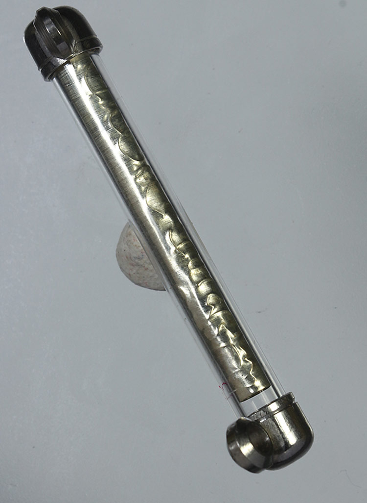 วัดใจ**เครื่องราง ตะกรุดปลดหนี้หรือตะกรุดกันผี กันคุณไสย แผ่นเงิน จารยันต์ด้วยมือ หลวงปู่กาหลง เขี้ยวแก้ว ความยาว 4 ซม. ใส่หลอด...พร้อมซองเดิมๆครับ |