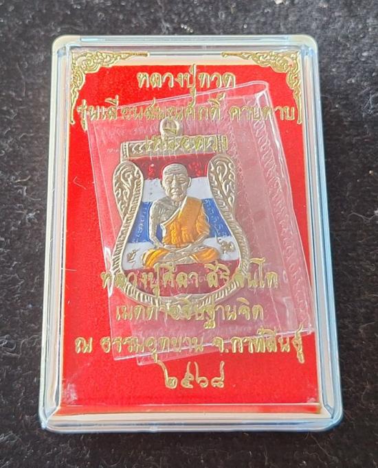 วัดใจ หลวงปู่ทวด หลวงปู่ศิลา เมตตาอธิษฐานจิต รุ่นเลื่อนสมณศักดิ์ เหนือดวง เนื้ออัลปาก้า ลงยาลายธงชาติ No.410 |